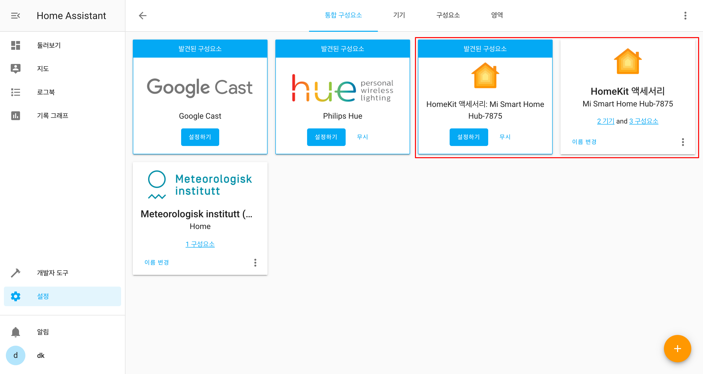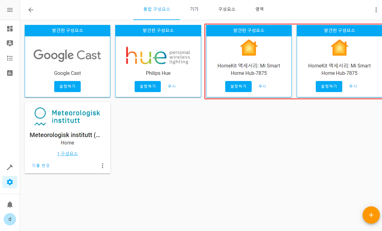 홈어시스턴트에 샤오미 스마트 허브를 연동했으니