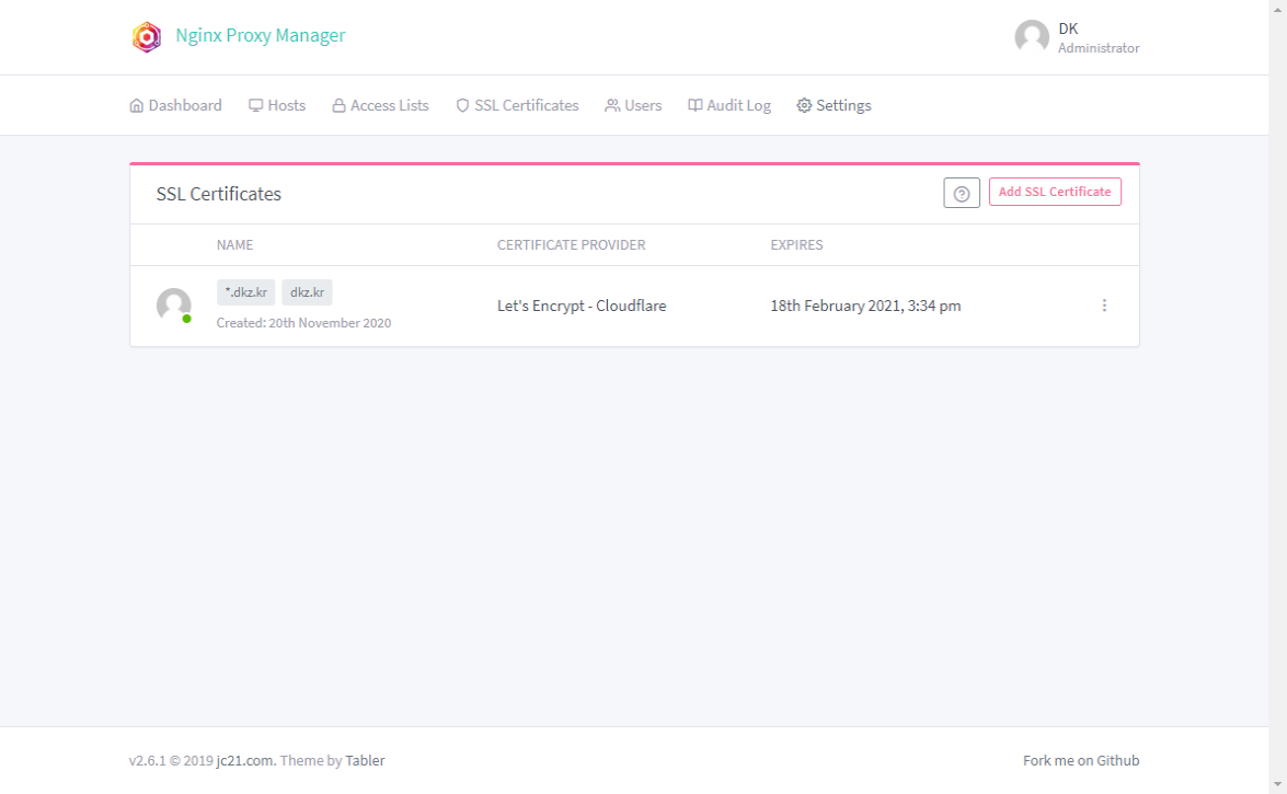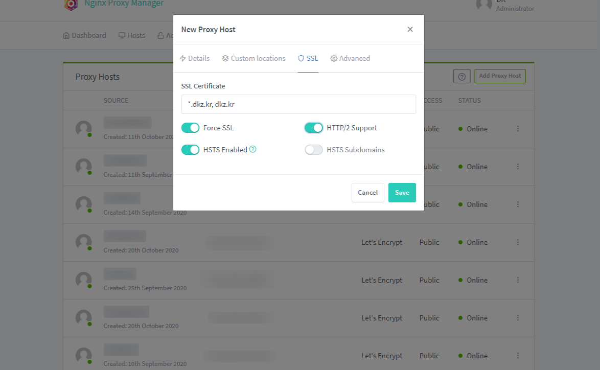 나는 일단 Proxy Hosts만 사용하고 있다.