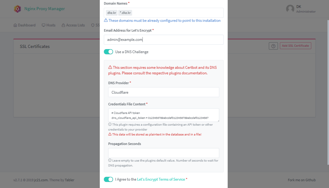 dns-challenge를 사용해야 하기 때문에 나는 dns를 cloudfare로 미리 이전했다.