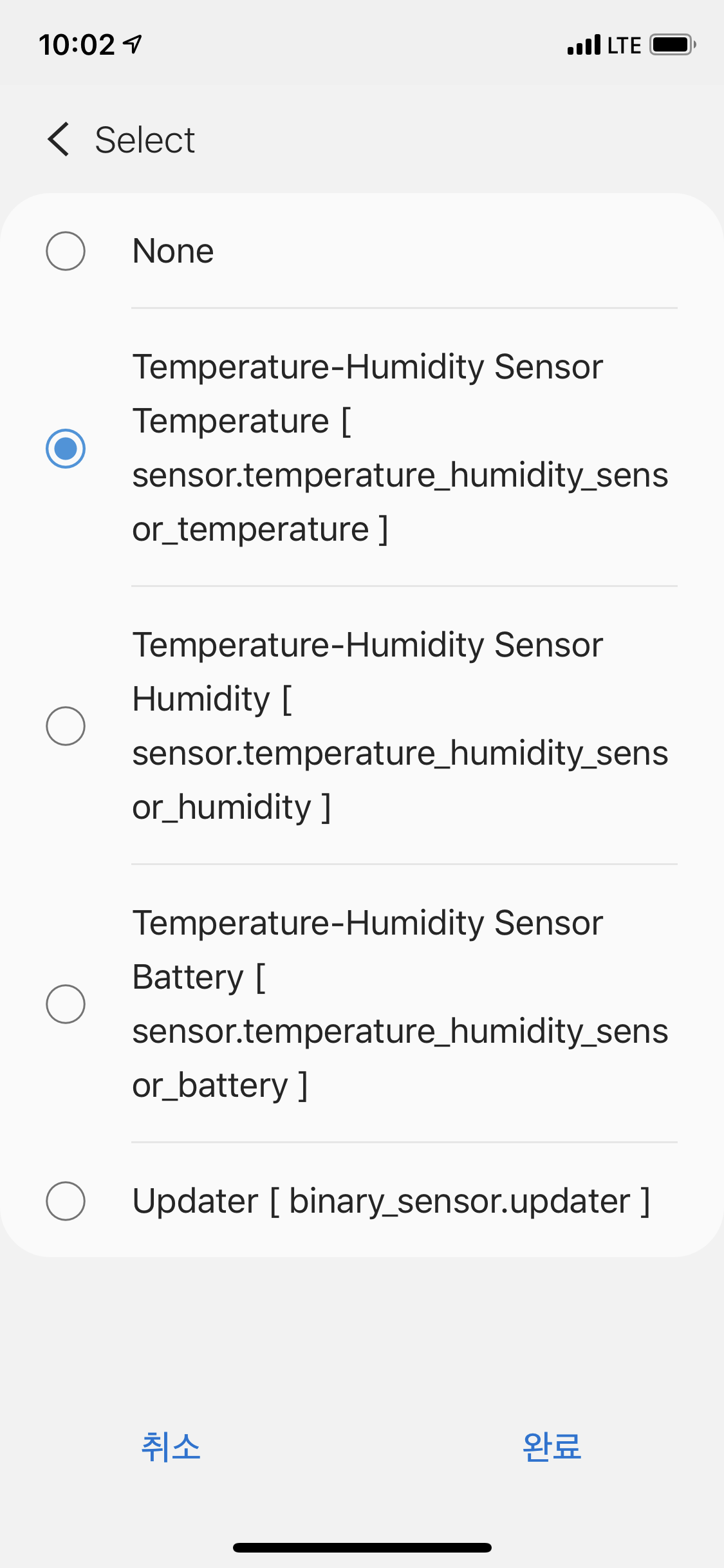 온습도 센서를 각각 온도, 습도로 두번 추가해주었고