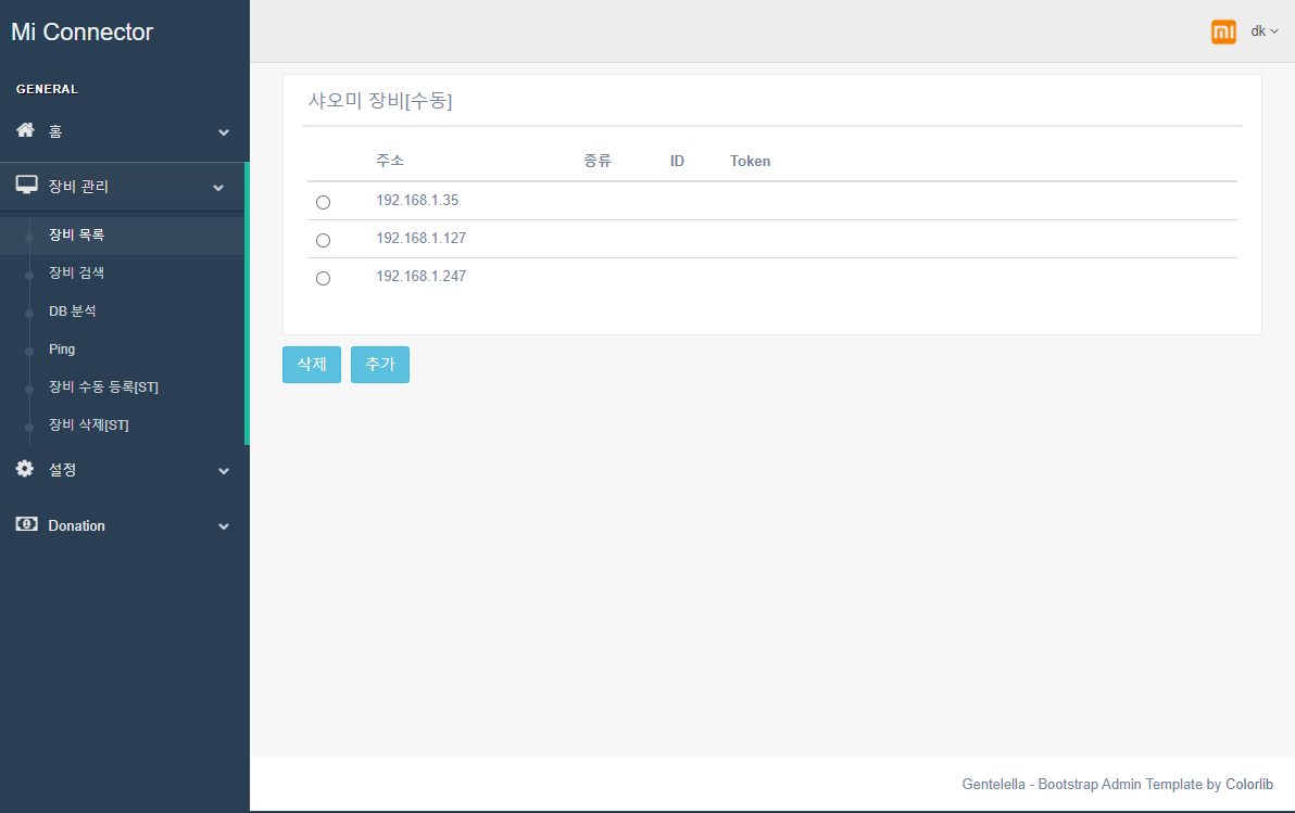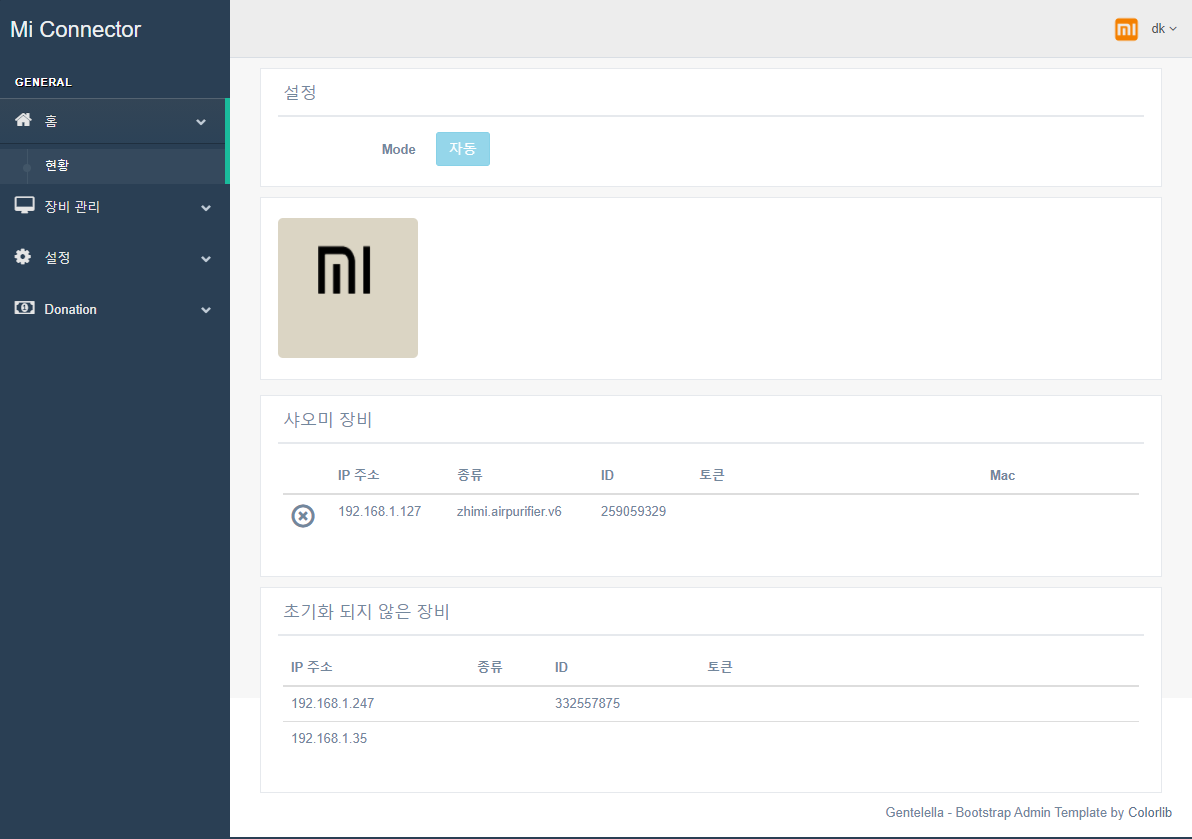 미커넥터에서 샤오미 기기를 등록해서 사용하려면